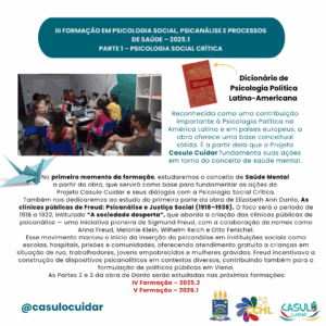 A III Formação em Psicologia Social, Psicanálise e Processos de Saúde – 2025.1 reafirmou o compromisso do Casulo Cuidar com a formação de sujeitos críticos e implicados com a realidade social.