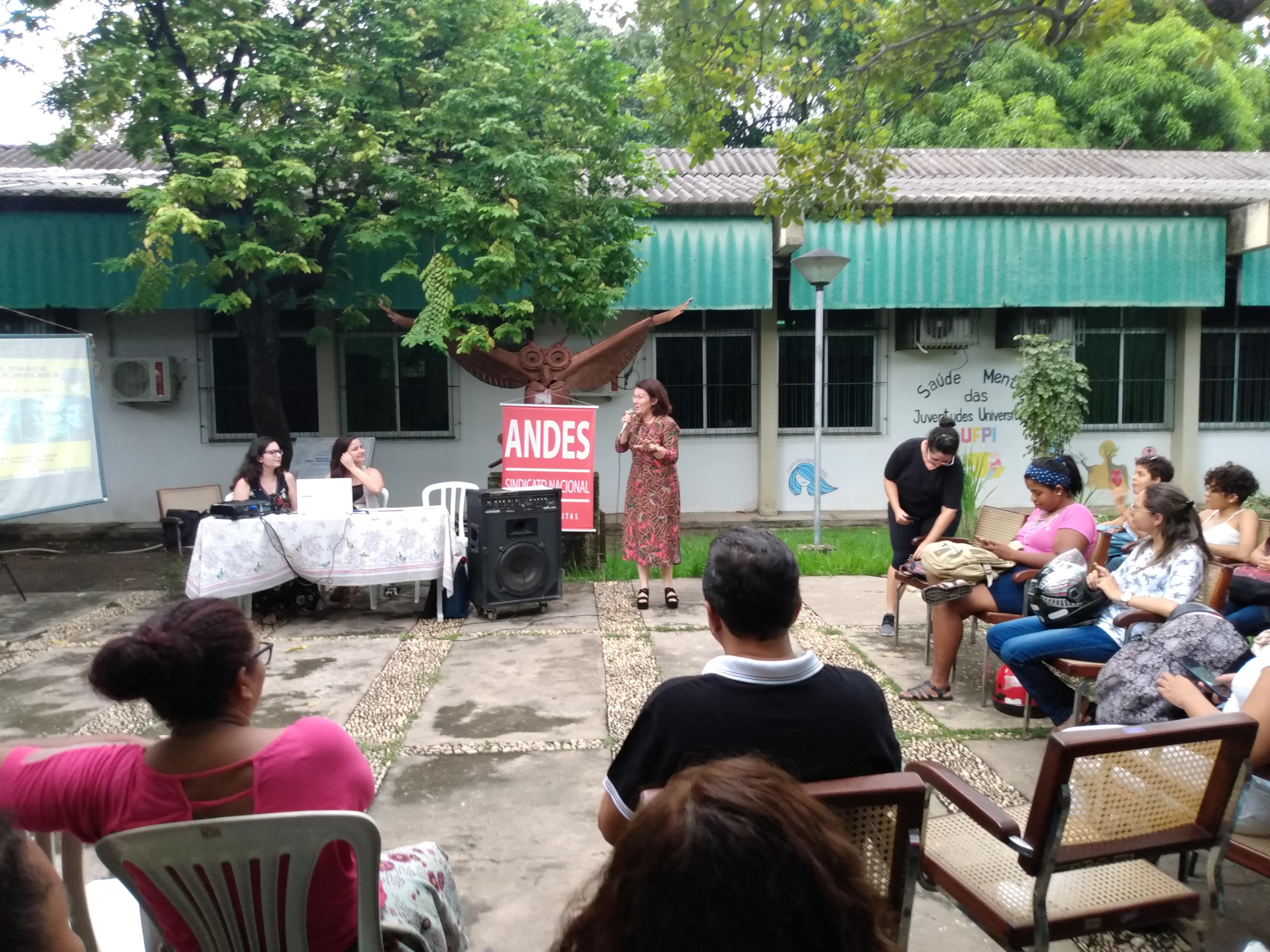 - Profa. Dra. Filadelfia C. de Sena, coordenadora do Projeto Casulo Cuidar, que compartilhou experiências do nosso coletivo multiprofissional. O Casulo oferece atendimento psicológico e ações dedicadas aos estudantes da UFPI, promovendo acolhimento as juventudes universitárias.