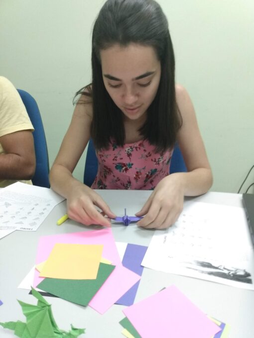 A proposta da oficina é utilizar o Origami como prática de cuidado, acolhimento e promoção da saúde mental das juventudes. Por meio da dobradura em papel, busca-se proporcionar novos métodos simples para desenvolvimento de habilidades manuais, concentração, autoestima, bem-estar e calma, além de apresentar aspectos da cultura japonesa, na qual o origami é compreendido como uma filosofia de vida.