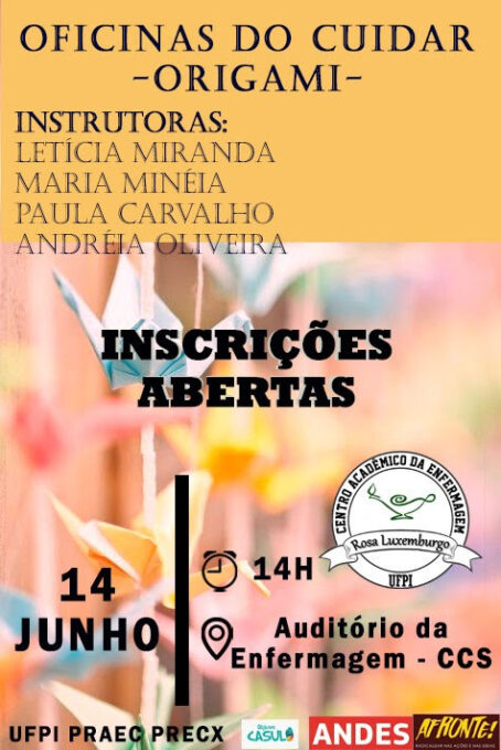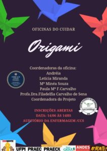 O Projeto de Extensão Casulo Cuidar, vinculado à Universidade Federal do Piauí, promoveu a Oficina do Cuidar das Juventudes – Tema Origami no ano de 2019 uma ação de natureza psicosocial e educacional, voltada para estudantes universitários, especialmente do Curso de Enfermagem.